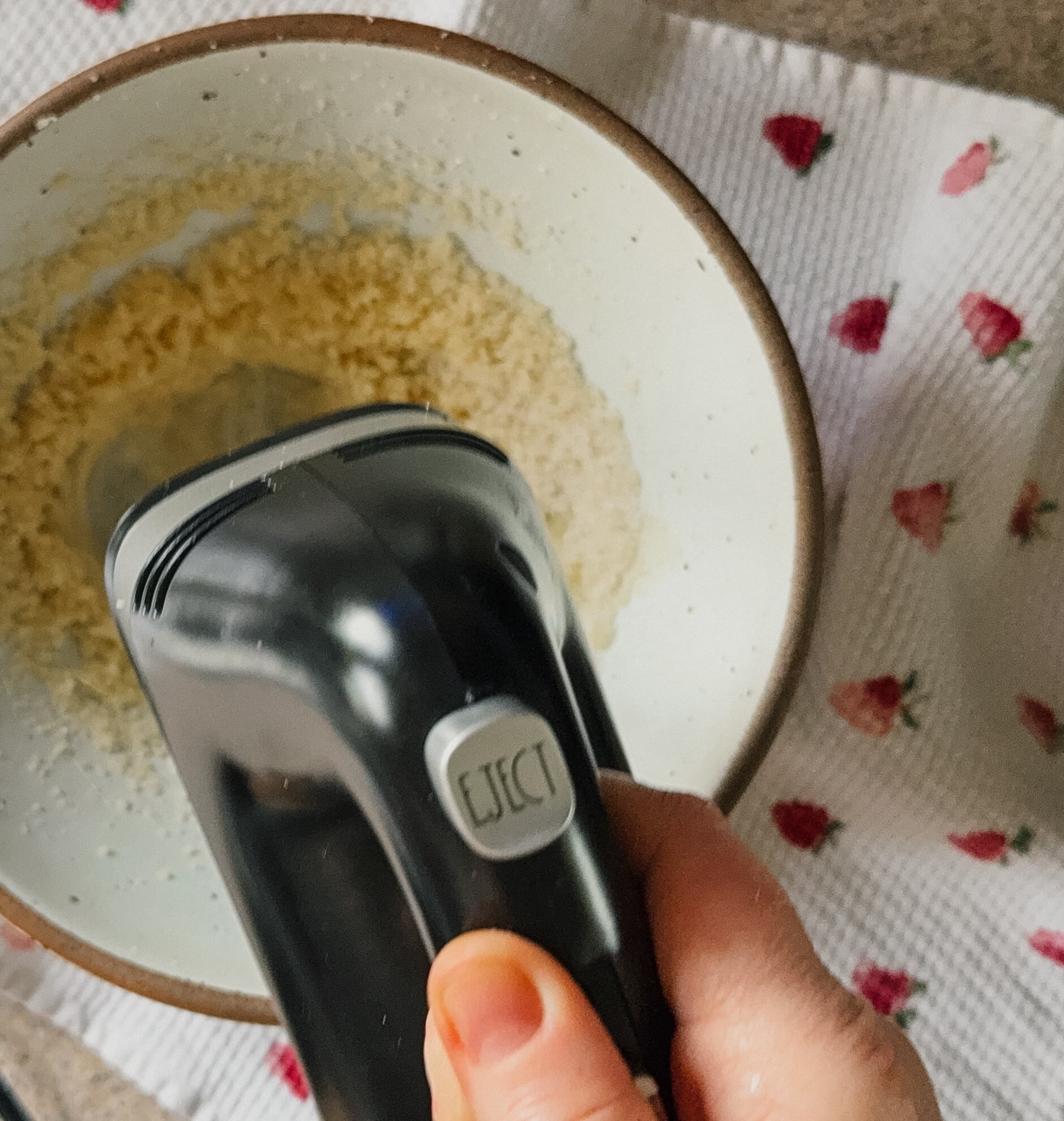 Step Two: Cream together butter and sugar, then mix in egg replacer, almond milk, and vanilla.