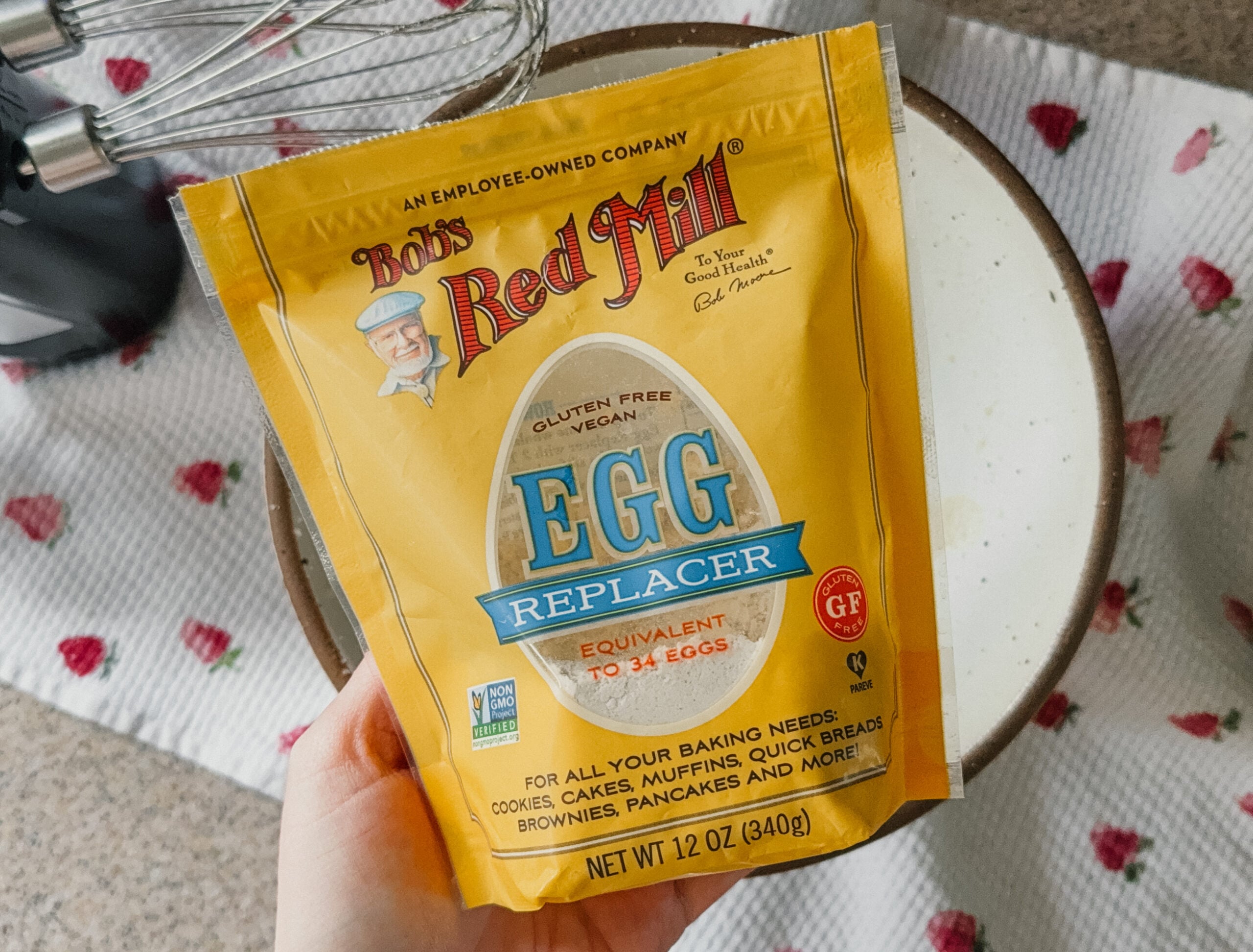 Egg Replacer – An egg replacer is made from a combination of flours and starches to mimic the binding abilities of a chicken egg. The benefits are no cholesterol and added fiber. If you prefer to use an actual egg, feel free!
