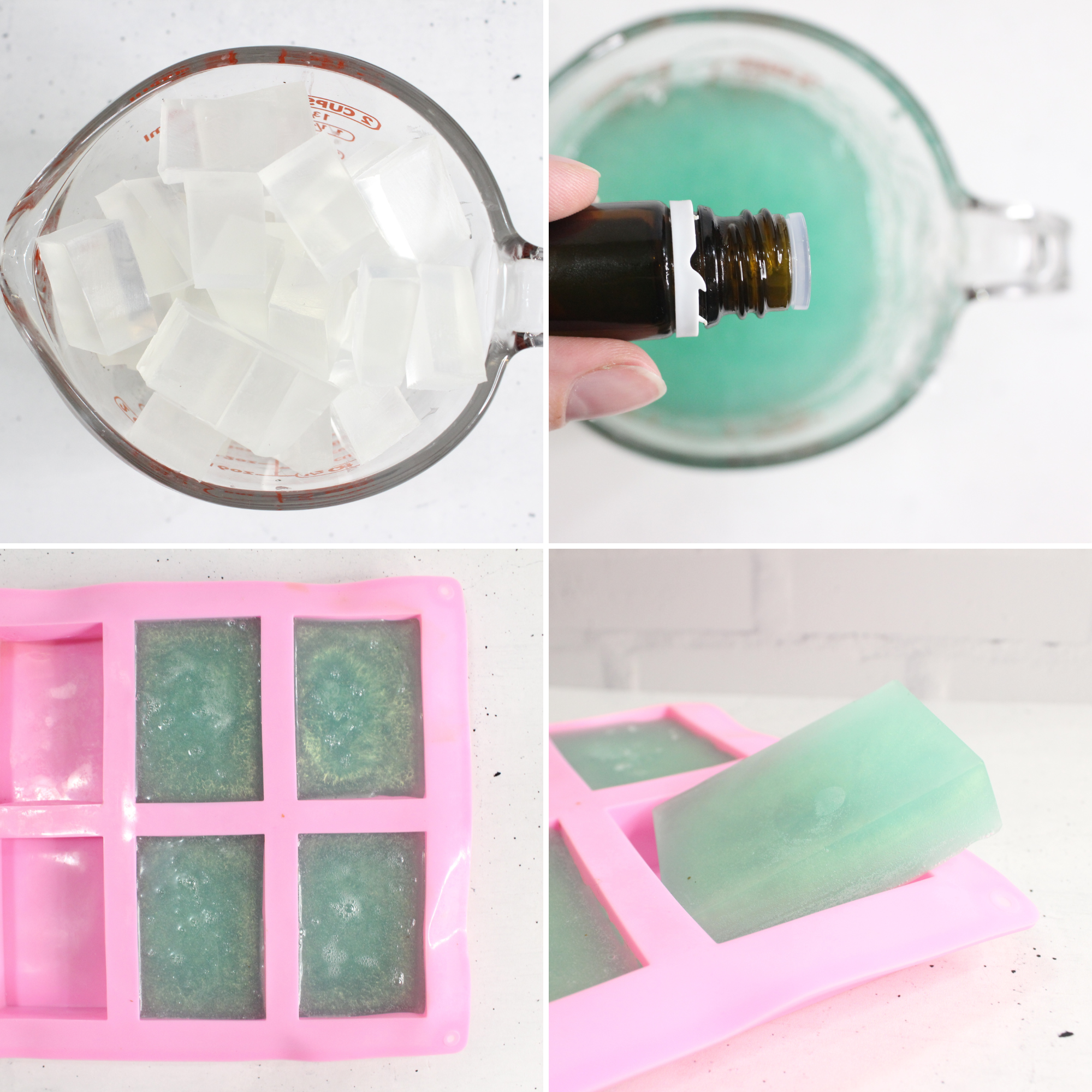 - Cut the glycerin soap base into small squares to help it melt evenly.