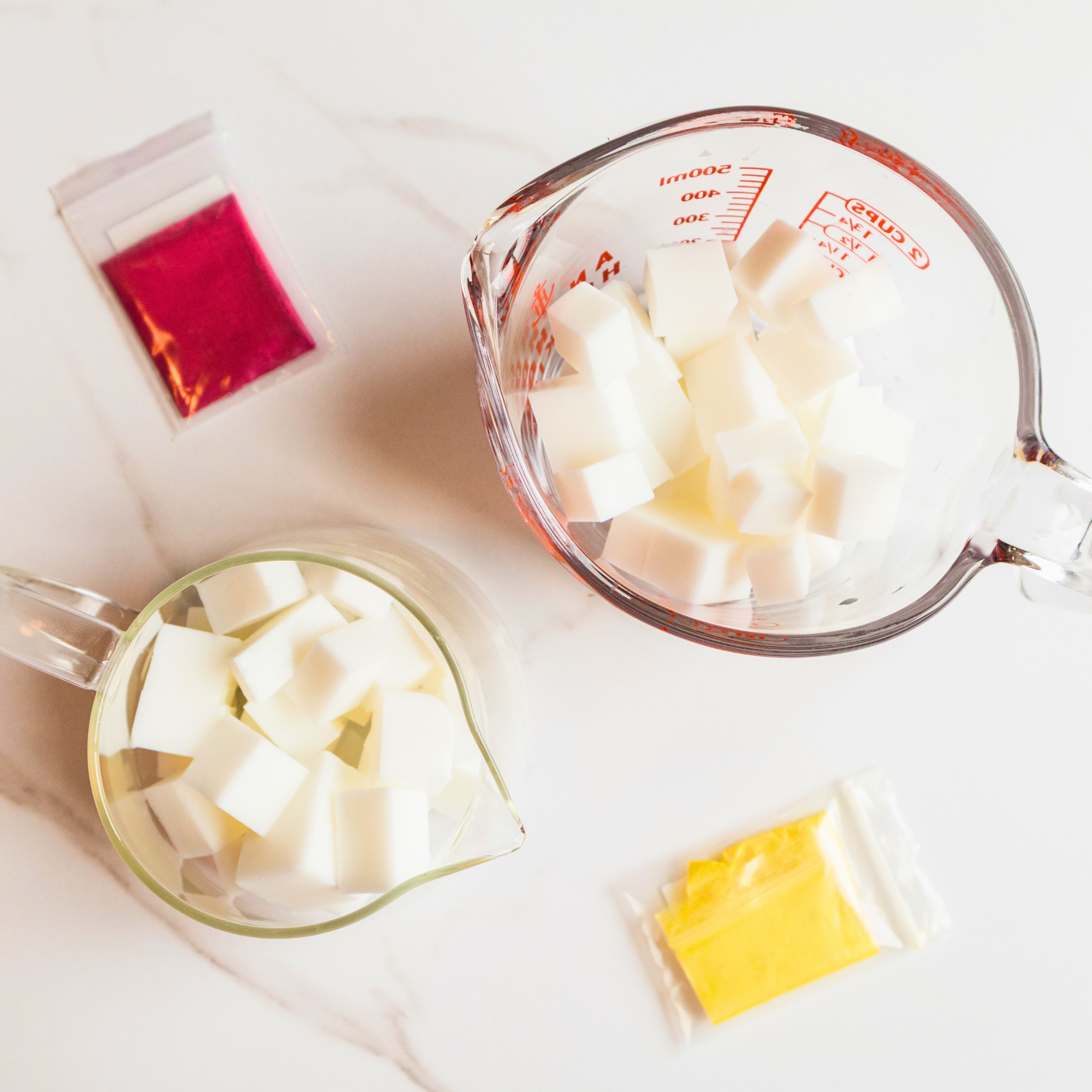 - Pink and lemon mica powder (about 1 teaspoon per color)