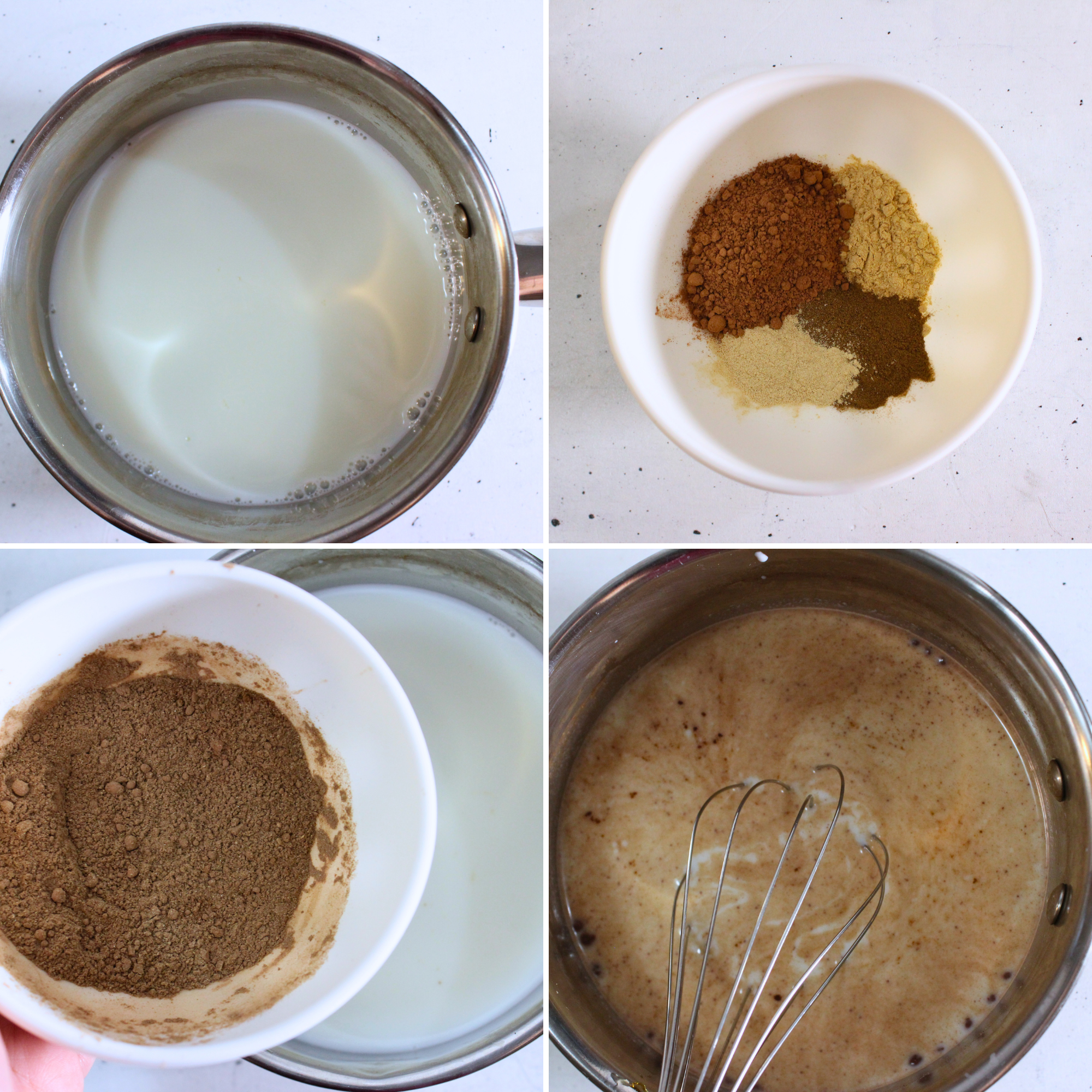 Slowly whisk the herbal cacao mixture into the warm milk until fully incorporated and smooth.