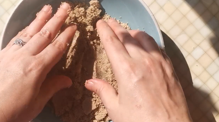 Step 2: Transfer your meal into a bowl and add a few teaspoons of water and massage until you can feel it coming together into what could almost be described as an oily pattie.
