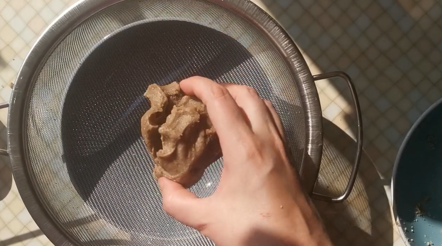 Step 5: Remove the cake from the strainer and physically squeeze any remaining oil out with your hands.