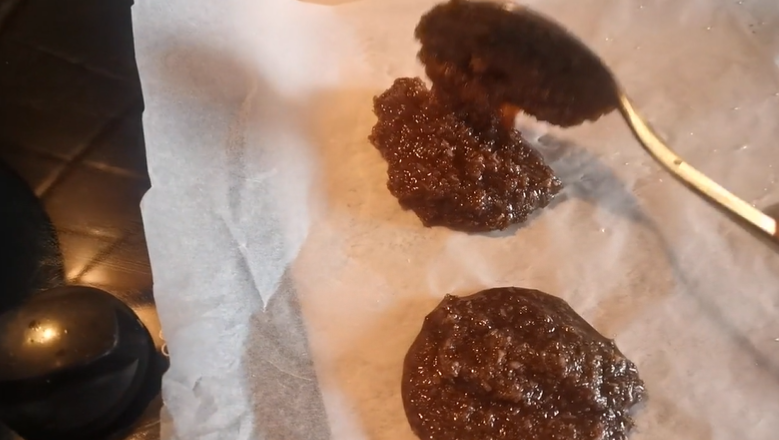 Step 4: Prepare your cookie sheet by lining it with parchment paper. Use a spoon or spatula, drop one portion onto the baking sheet, spacing them 1 inch apart. Allow them to cool for 2 hours.