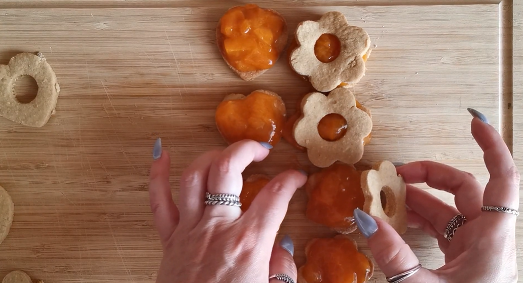 - Bake the cookie bottoms and tops separately on different sheets to prevent uneven baking. Adjust the amount of jam/preserves to your liking. Spread the preserves close to the edges.