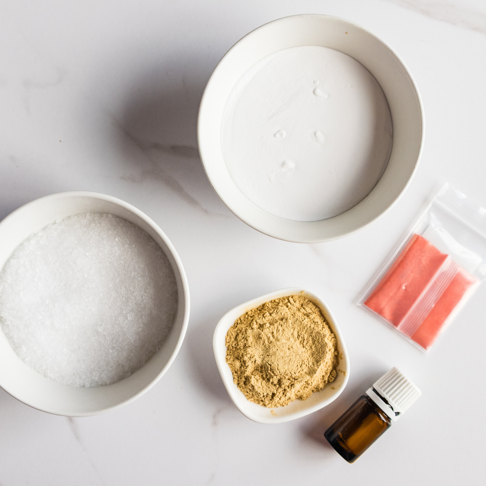 Water: Activates and binds the mixture. It’s important to add it slowly to avoid starting the fizzing process too early.