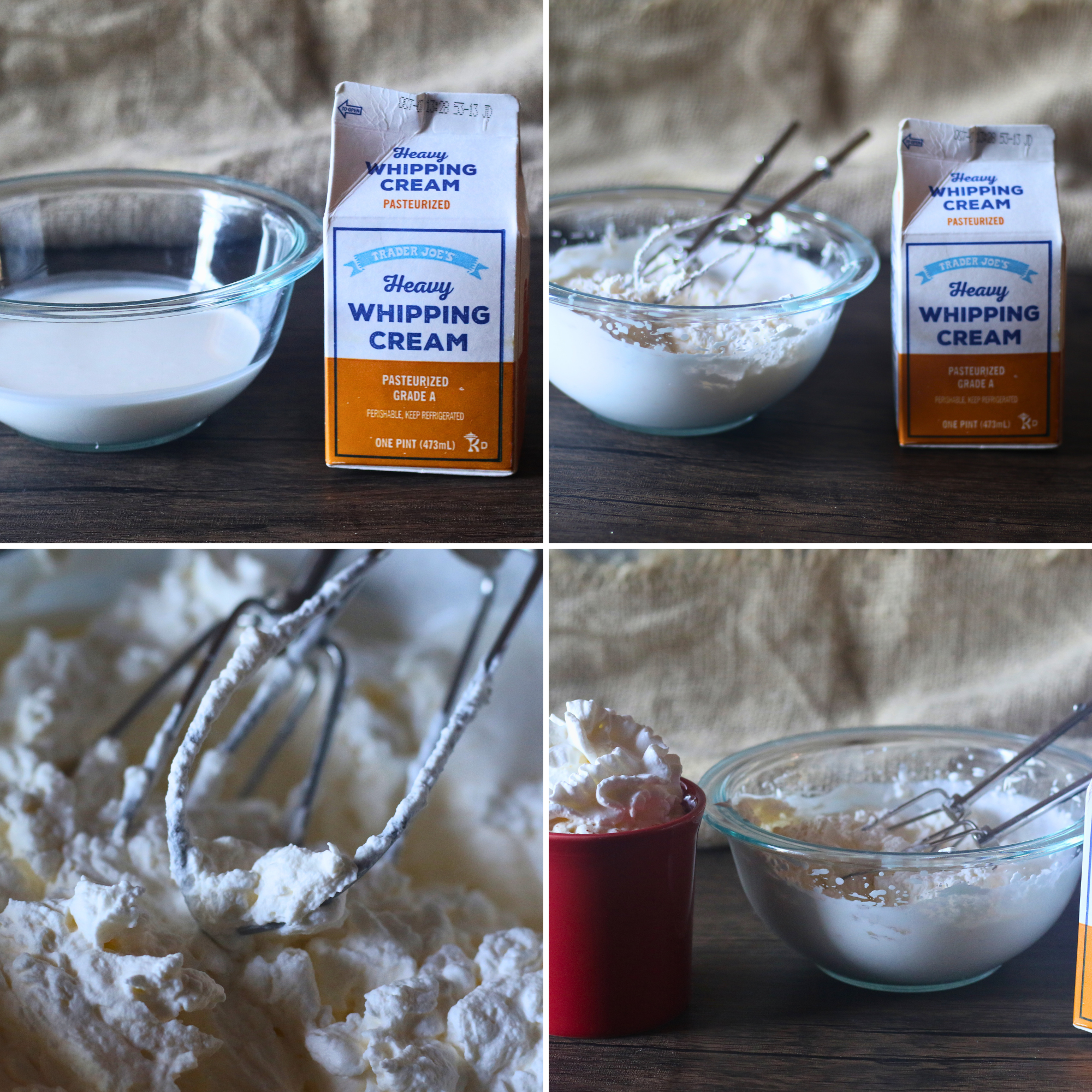 - Place a mixing bowl and beaters (or whisk attachment) in the freezer for 10–15 minutes. Cold equipment helps the cream whip faster.